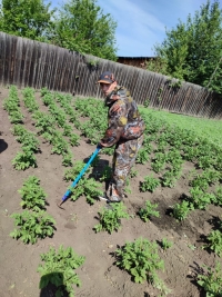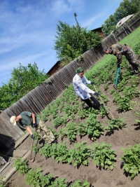 Воспитанники нашего интерната также решили внести свой посильный вклад и с удовольствием согласились оказать помощь маме нашего земляка, участника СВО. Ребята со знанием дела дружно взялись за работу: подняли из подвала овощи, семенным картофелем засадили приусадебный участок Татьяны Алексеевны, поборолись с сорняками и размели дорожки.